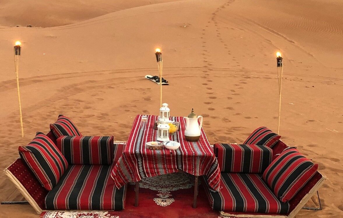 - Settle on a traditional Arabic carpet for a BBQ dinner in desert dubai
